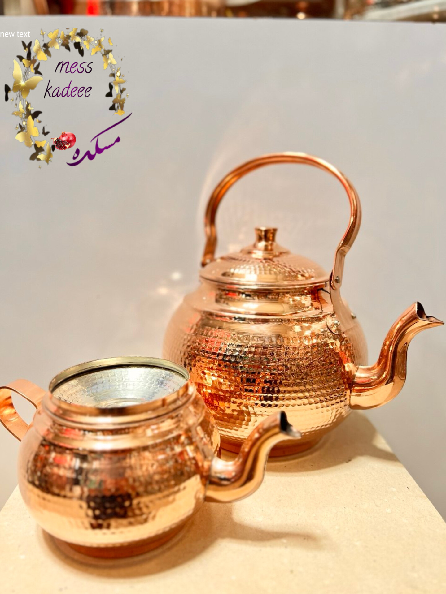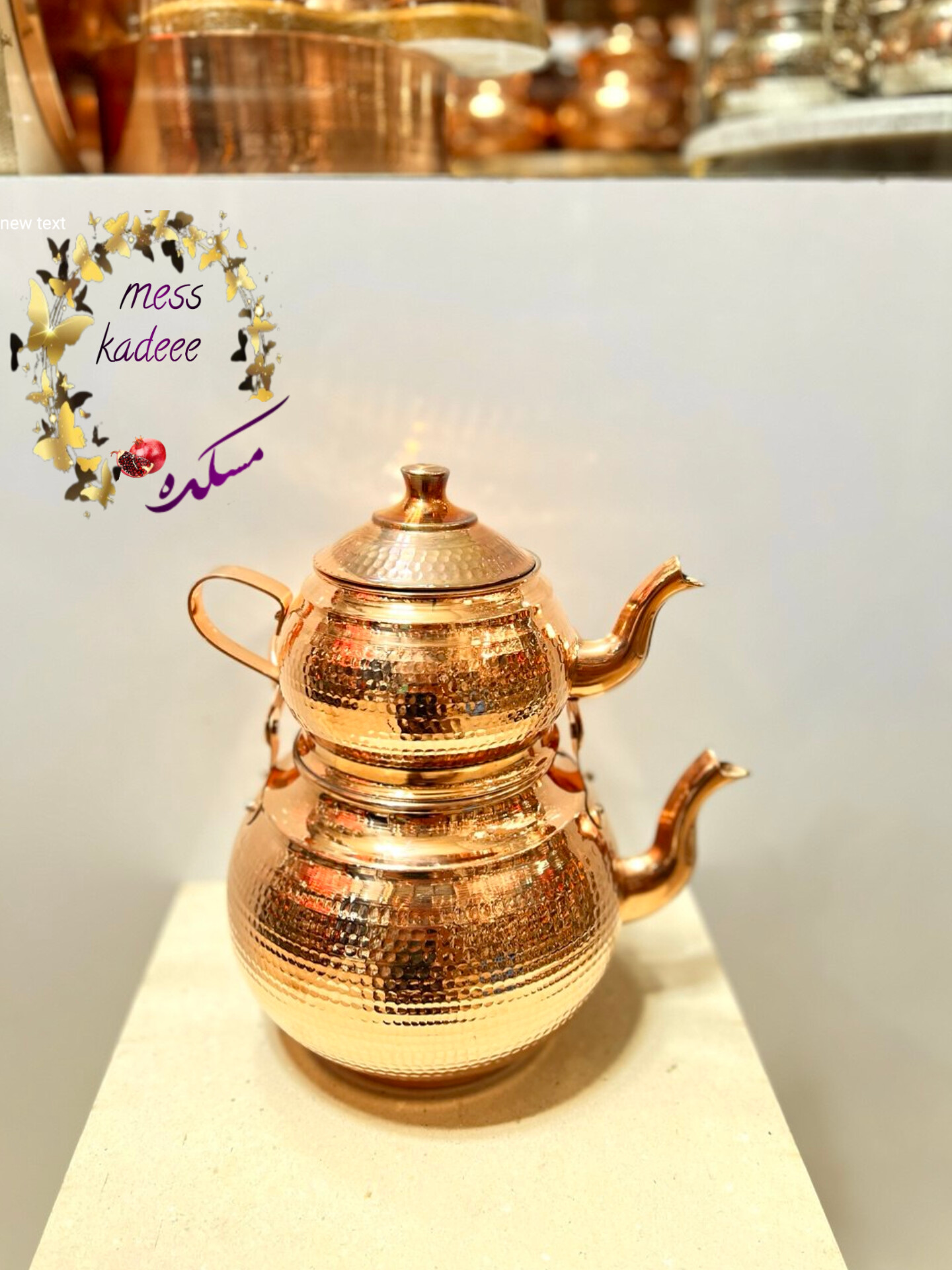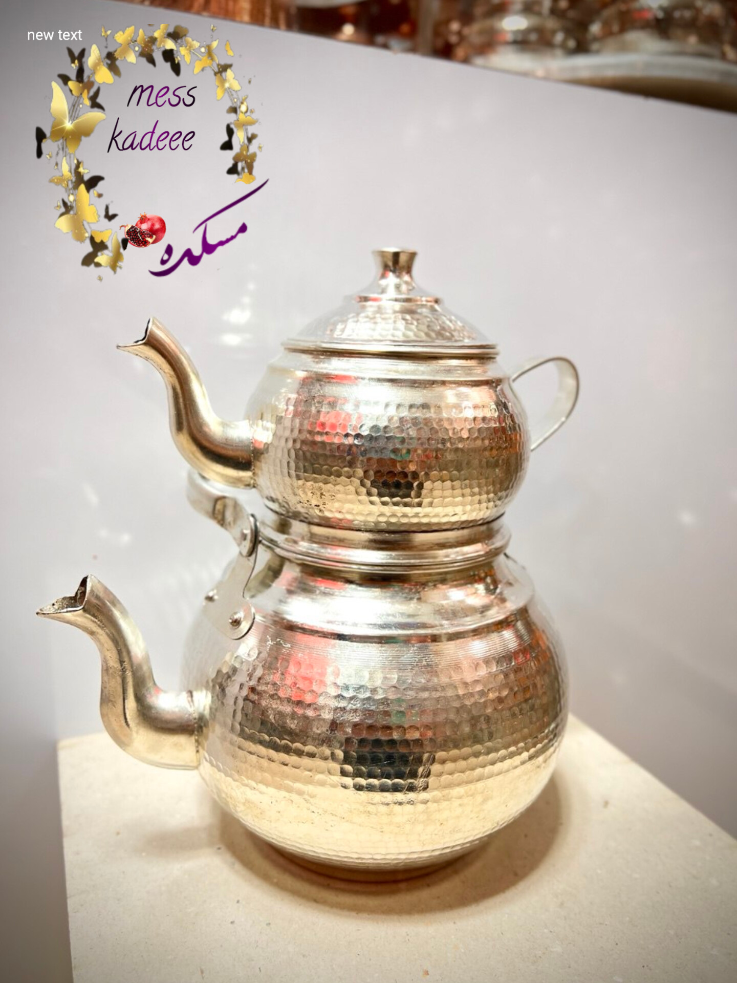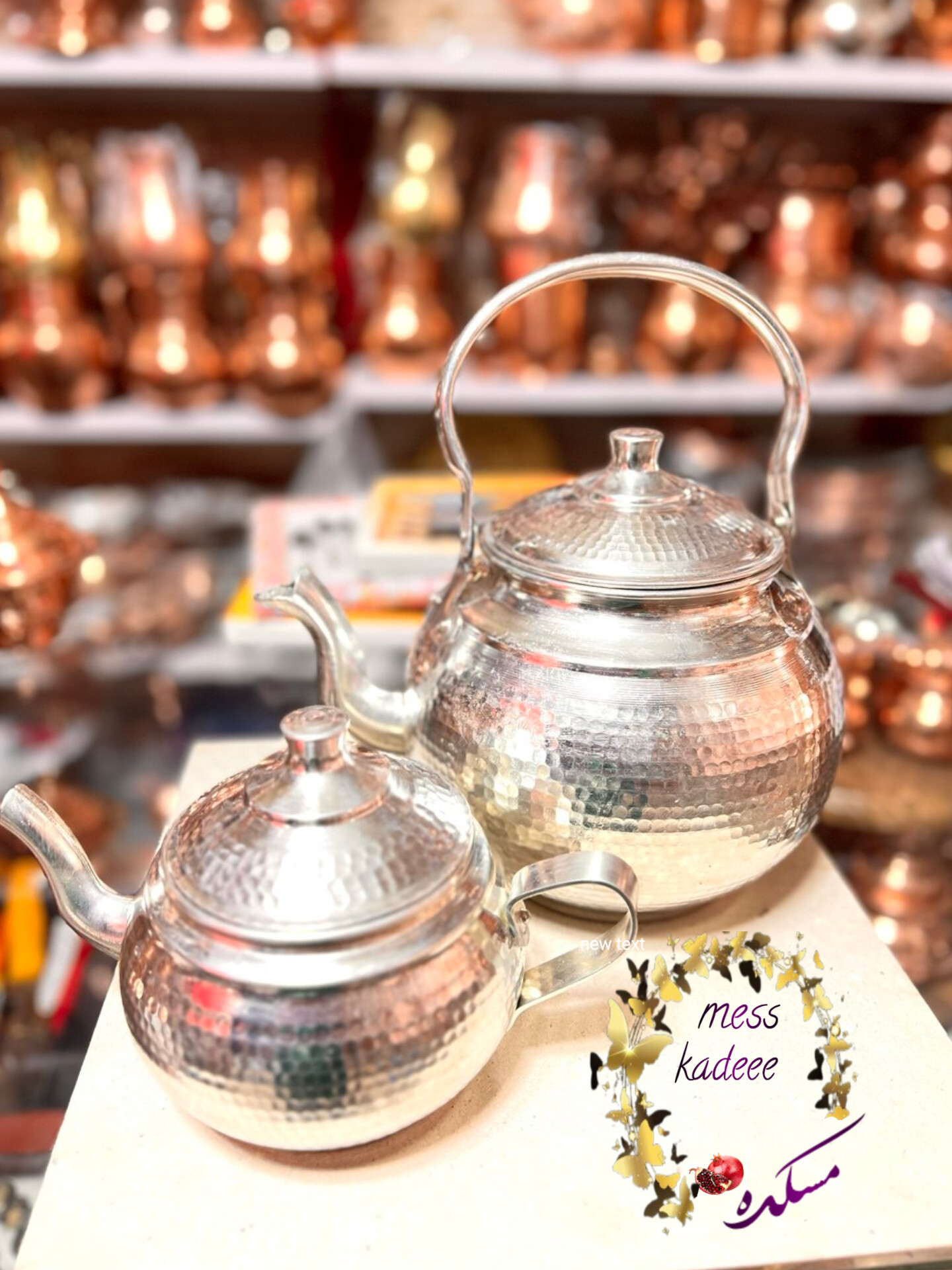 ☕ کتری و قوری مسی طرح چکشخور – در دو رنگ کروم و قرمز